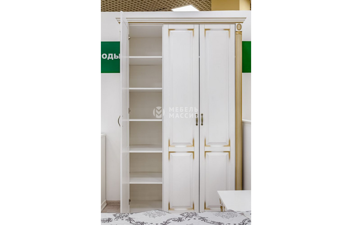 Шкаф 3-х створчатый из серии Пальма (белая эмаль с золотой патиной)